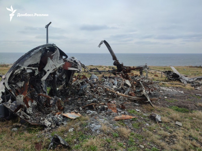 Отмечено, что постройки на острове в основном разрушены, много уничтоженной российской техники, среди которой системы ПВО «Панцирь» С1, комплекс ПВО «Тор», топливозаправщики. Остались также и боеприпасы.