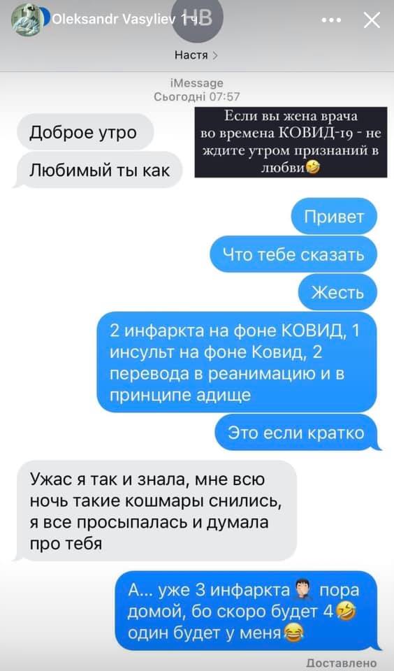В сети обсуждают переписку врача Александровской больницы Александра Васильева с его женой Анастасией. Доктор написал ей, что в больнице ситуация напряженная и умирают люди — «в принципе адище».