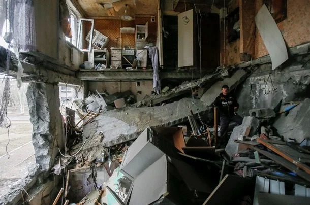 По территории Енакиево разбросаны вещи местных жителей. В частности, можно увидеть как чьи-то сервизы, так и мягкие игрушки/