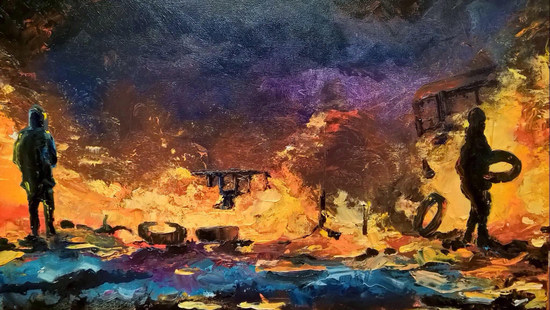 «Ретроспективная серия картин — заново пережитые личные впечатления и опыт художника. Для участников Революции Достоинства выставка станет поводом окунуться в свои воспоминания, в картинах автора увидеть собственные пережитые истории», — говорится в сообщении.