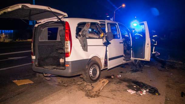 В Киеве, где недавно в ДТП пострадали пять человек, на Столичном шоссе микроавтобус Mercedes Vito выехал за пределы проезжей части и врезался в отбойник.