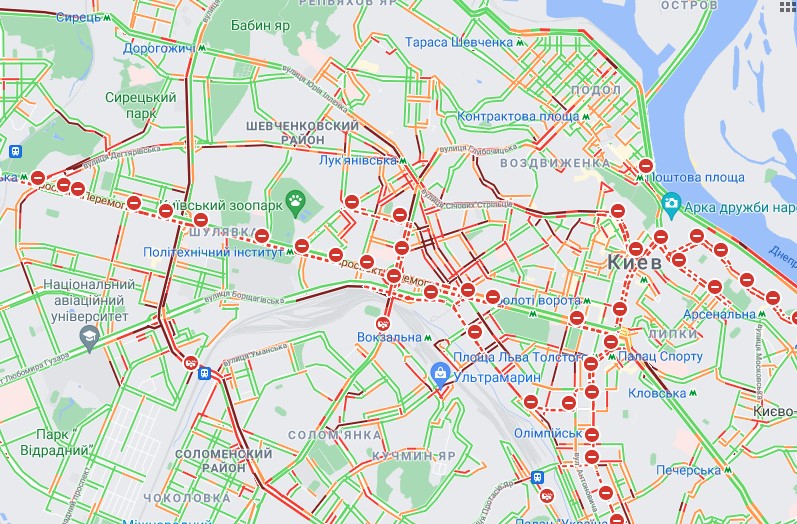 РБК-Украина приводит список перекрытых улиц.