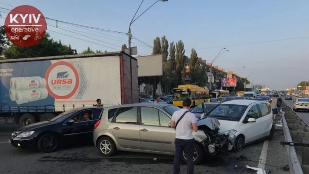 Вечером 15 июня в Киеве на проспекте Победы вблизи станции метро «Святошино» произошла масштабная ДТП. Авария с участием шести автомобилей парализовала выезд из столицы. В ДТП пострадала женщина, ее госпитализировали.