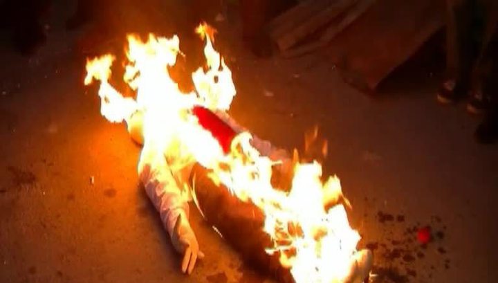В Киеве на Бессарабской площади активисты сожгли чучело Владимира Ленина