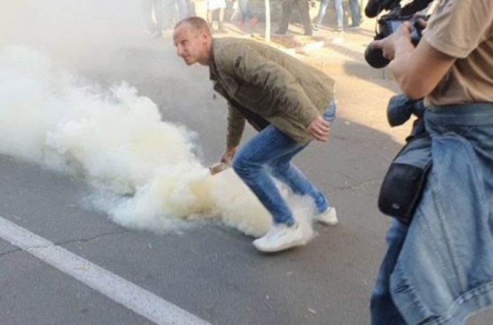 Как передает корреспондент «Сегодня.ua«, было слышно по меньшей мере три взрыва. После этого правоохранители начали применять слезоточивый газ.