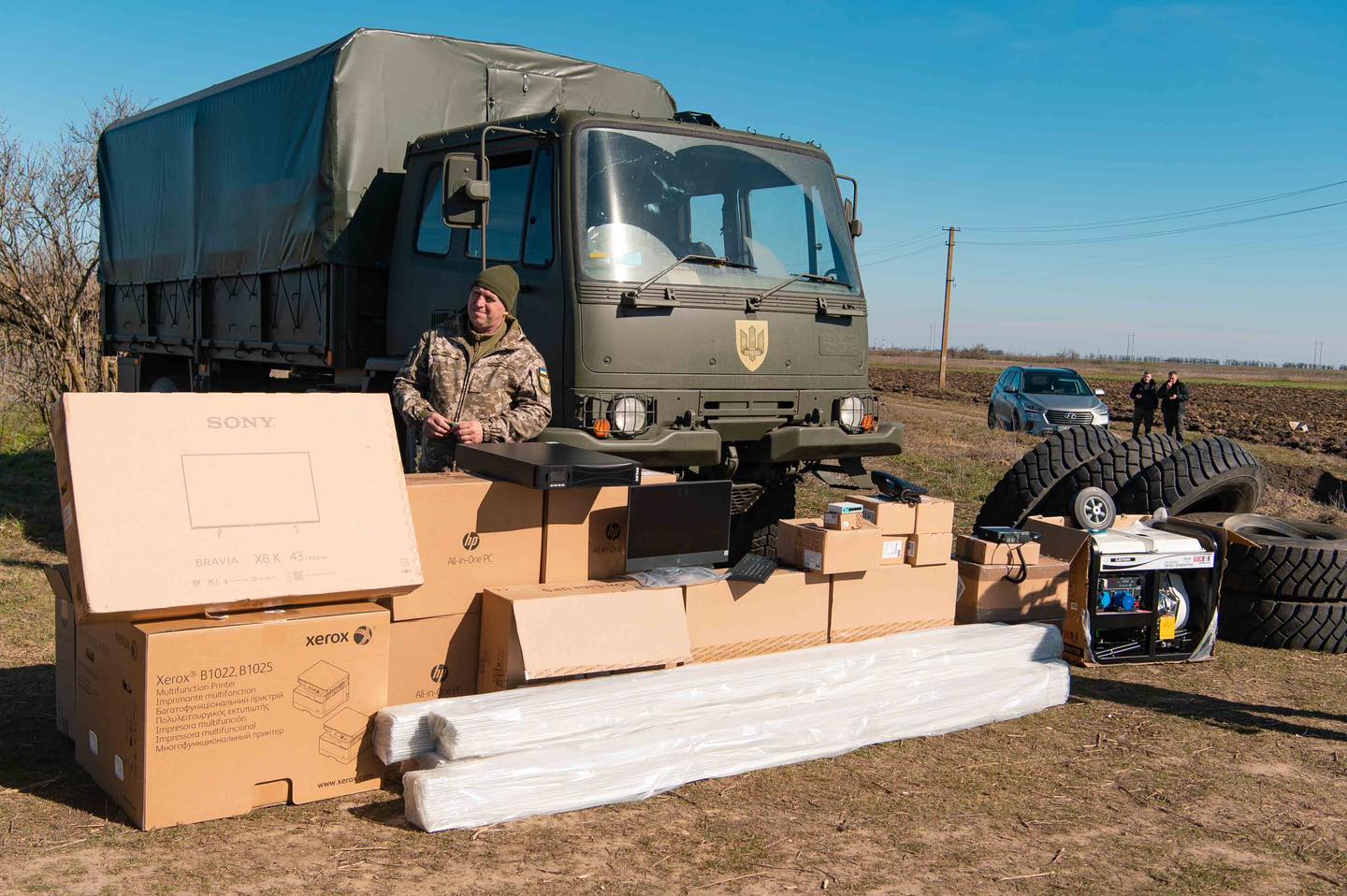 Бойцам привезли грузовик DAF, запасные шины, а также мониторы, генератор и другую необходимую технику, заказанную военными.
