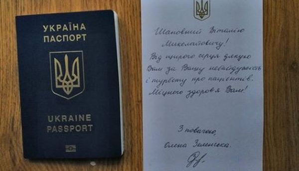 На снимке лист, на котором написана благодарность, размещен для сравнения рядом с паспортом, который ненамного меньше по размеру.