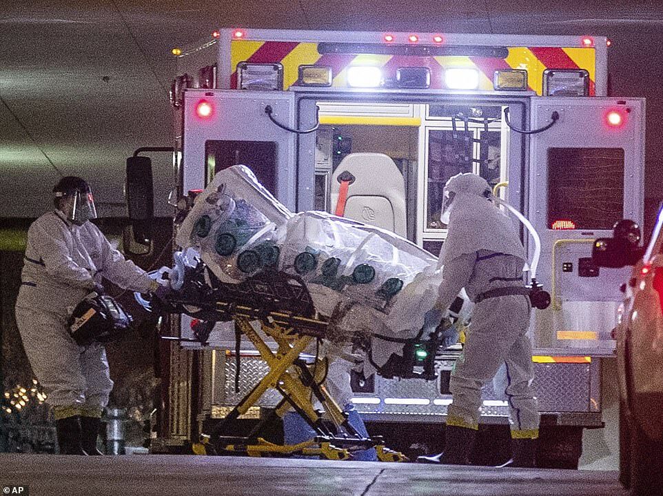 В Небраске произошли драматические сцены, когда женщину с положительным тестом на вирус перевезли из обычной больницы в медицинский центр Университета Небраски в Омахе.