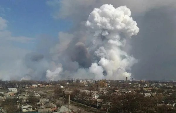 Предварительной версией причины взрывов назвали перебрасывание огня на склад боеприпасов с загоревшейся травы.