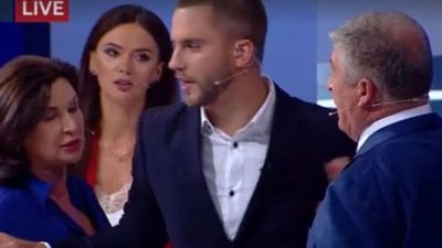 Богословскую возмутила фраза Червоненко, который на реплику «я на базарном языке не разговариваю» ответил экс-нардепу, что она так разговаривает «когда приходит за деньгами». Богословская с криком «за какими деньгами?» бросилась к Червоненко и пыталась ударить его по лицу, однако тот успел подставить плечо. После этого политиков разняли ведущие ток-шоу.