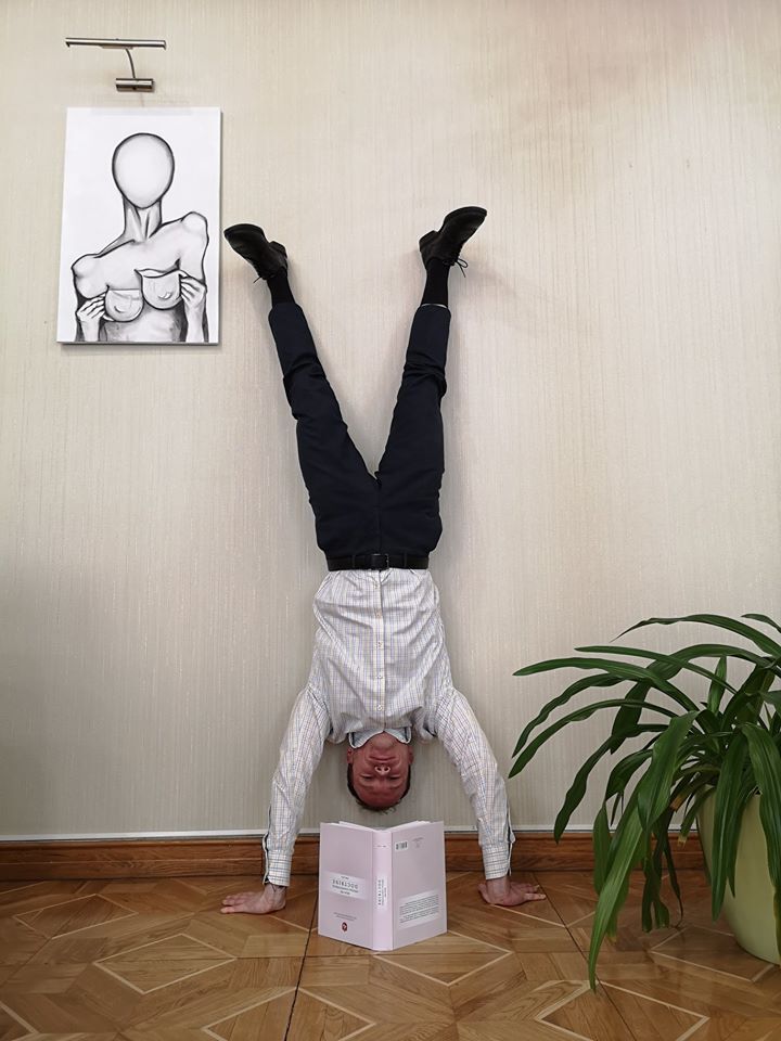 Министр юстиции Украины Денис Малюська опубликовал очередное странное фото, где он читает книгу стоя на руках. Пост…