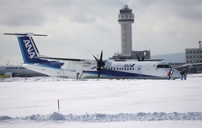 У японському аеропорту літак застряг у снігу ( відео)