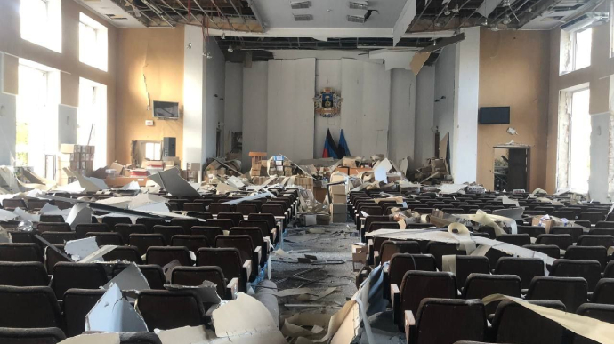 Окупанти запевняють, що одна з ракет HIMARS влучила в будівлю “міської адміністрації” Донецька.