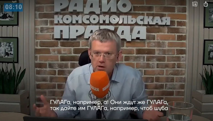 “Відібрати кредитки, на які вони отримують гроші і змусити їх зжерти! Або виселити їх із квартир. Ну хоч що-небудь у дусі нашого старого доброго ГУЛАГу. Вони ж чекають ГУЛАГу! То дайте їм ГУЛАГ, щоб шуба загорнулася!” – закликає в етері ведучий .
