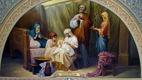 Мати Ісуса народилася в сім’ї Йоакима та Анни, які були літньою та бездітною парою. Вони довгий час молилися Богові за потомство. Якось Іоаким вирушив у пустелю, щоб помолитися за дар народження дитини. Там його зустрів Ангел, який відкрив йому, що його дружина Анна стане матір’ю благословенної дочки. Подружжя з радістю зустрілося біля Золотих воріт Єрусалима, що відображено на іконі “Зачаття праведної Анною Діви Марії”. Вони обіцяли присвятити свою дочку Господу.