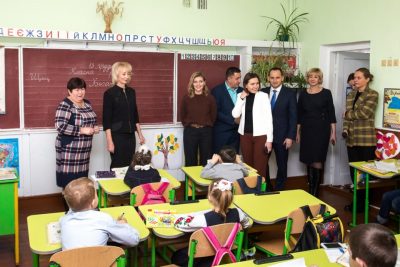 До зустрічі Олени Зеленської з головою Київської обласної держадміністрації Олексієм Чернишовим приєдналася міністр освіти і науки Ганна Новосад. Обговорювали ситуацію зі шкільною освітою в області в цілому, плани щодо будівництва нових шкіл та організації опорних, поточний стан системи шкільного харчування.