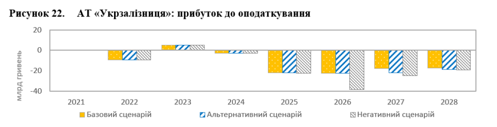 У 2027 році базовий та альтернативний сценарій прогнозують збиток на рівні 18,5 та 22, 14 млрд грн відповідно.