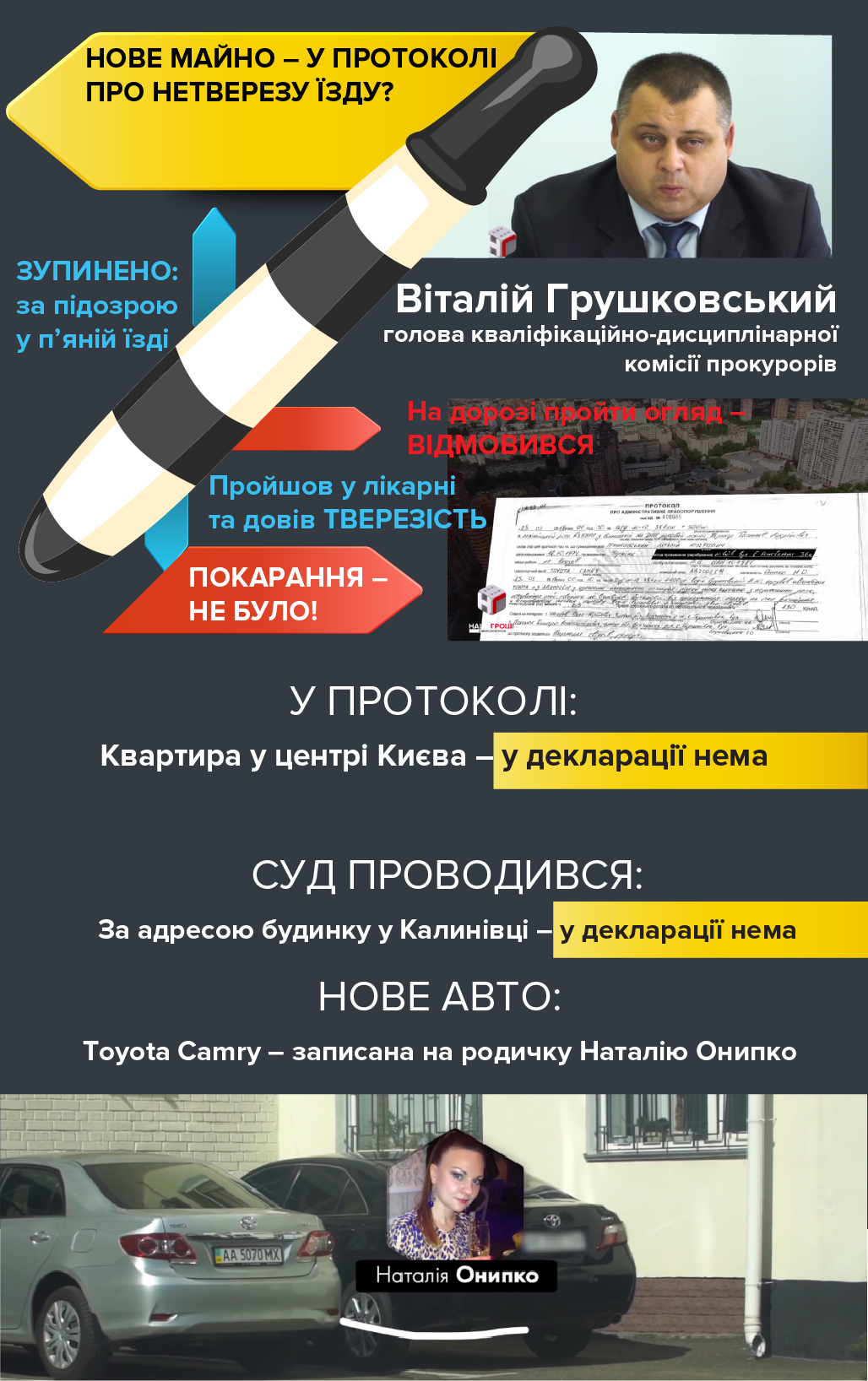 ФОТО З ВІДКРИТОГО ДЖЕРЕЛА На голову дисциплінарної комісії прокурорів Віталія Грушковського поліція склала адмінпротокол через нетверезу їзду.…