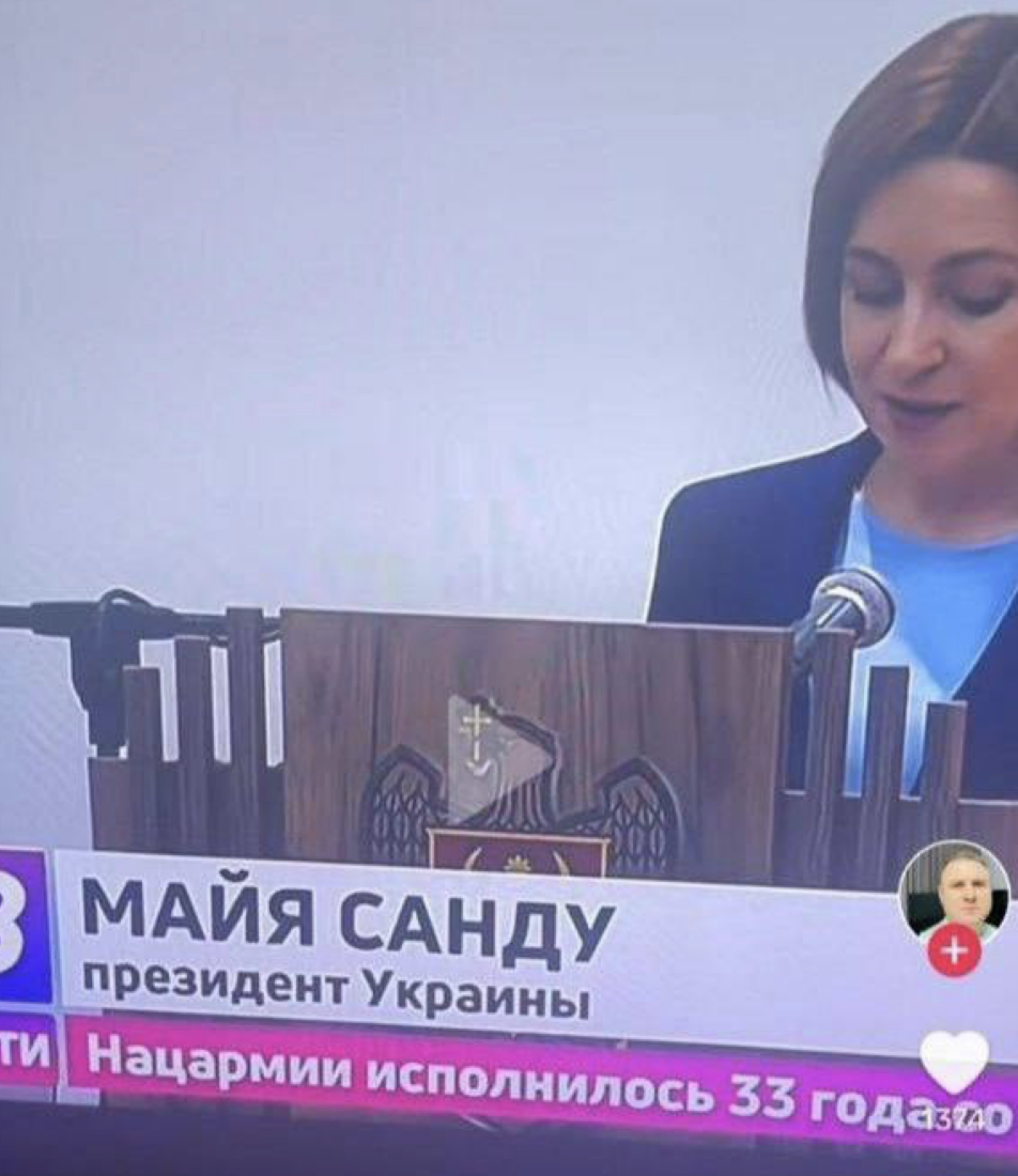 На телебаченні президентом України назвали лідерку Молдови Майю Санду. Про це йдеться у повідомленні ТГ-каналу NEXTA. “Молдовський…