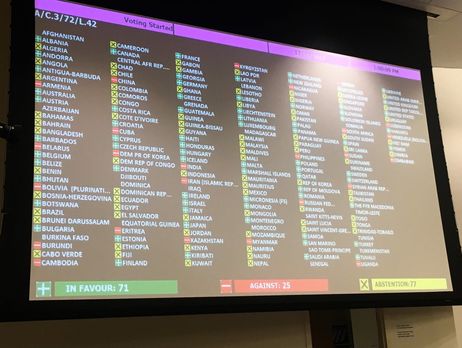 Росія, Білорусь, Вірменія, Сербія та ще 15 держав проголосували проти схвалення Генеральною асамблеєю ООН резолюції, яка закликає…