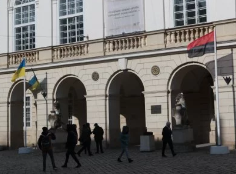 Біля Львівської ратуші – будівлі, в якій розташована міська рада, 20 лютого вперше вивісили прапор Української повстанської…
