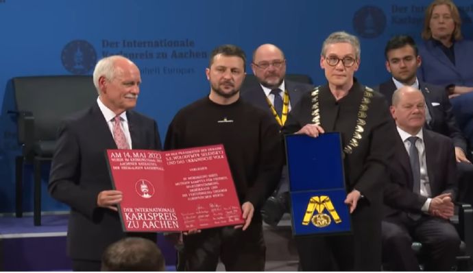 Президент Володимир Зеленський та український народ 14 травня отримали Міжнародну премію імені Карла Великого. Церемонія нагородження відбулася…